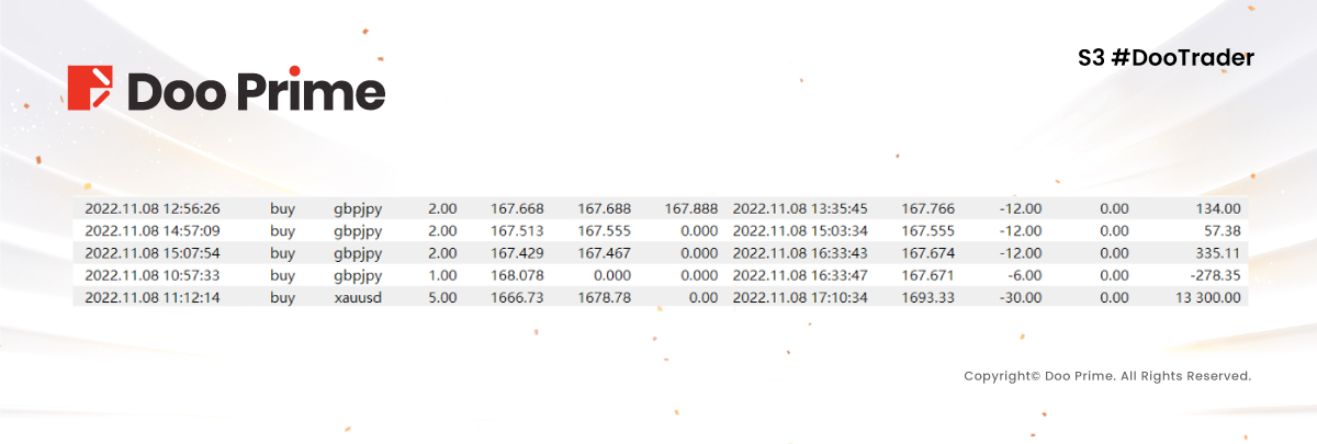 Xue YanqXXX made a 5-lots XAUUSD trade on 8th November 2022. With only 6 hours, he made an excess profit of 13,300 USD which  dramatically uplifted his account’s yield and ranking.