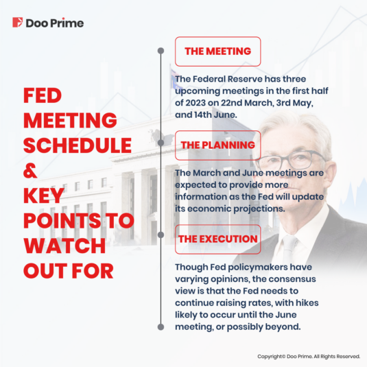 The Fed’s upcoming meeting on 22nd March 2023 will be informative for investors to adjust their expectations for interest rates in 2023, with the updated Summary of Economic Projections providing insight into the Fed’s predictions.