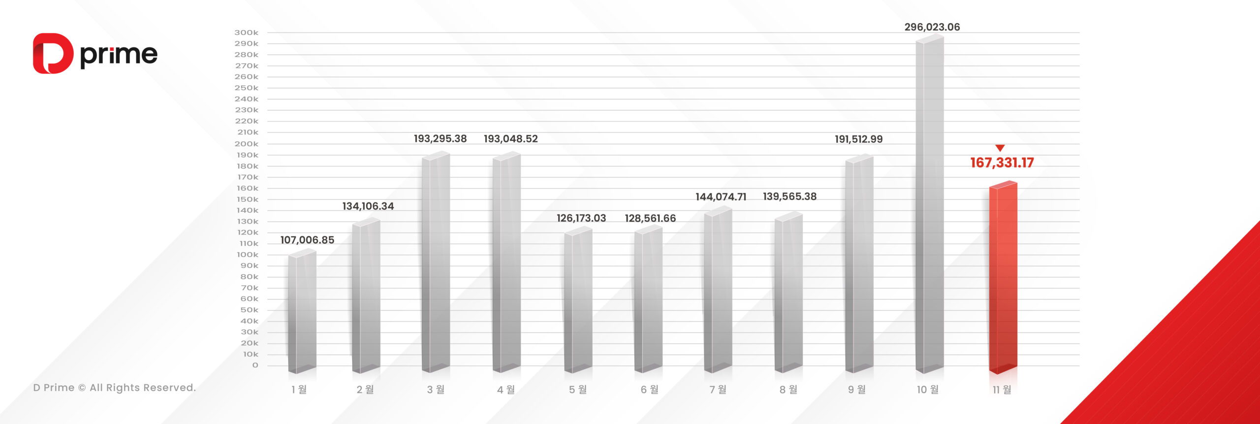 최근, 금융기술을 핵심으로 하는 온라인 증권사 D Prime 이 2025년 11월 거래량 보고서를 발표했습니다.