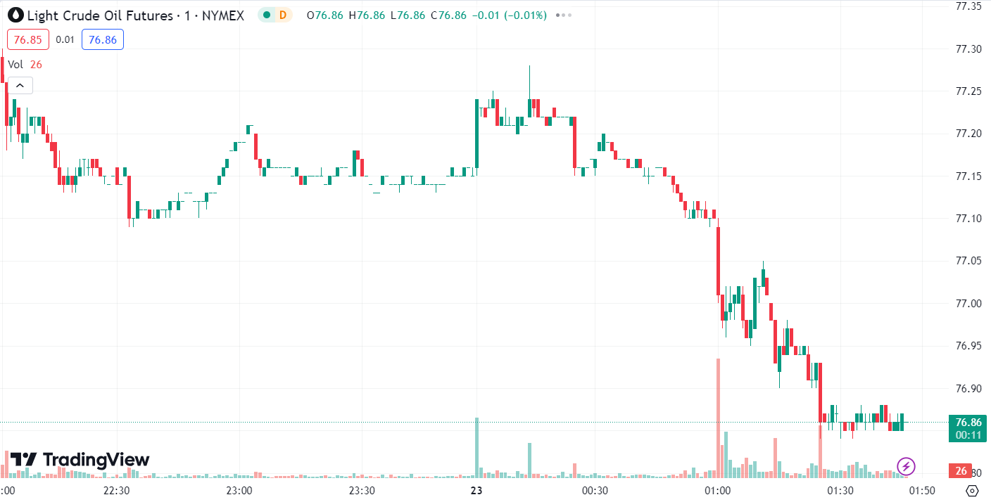 WTI crude oil ultimately closed down 1.22% at USD 77.2 per barrel, while Brent crude fell 1.01% to USD 81.66 per barrel.