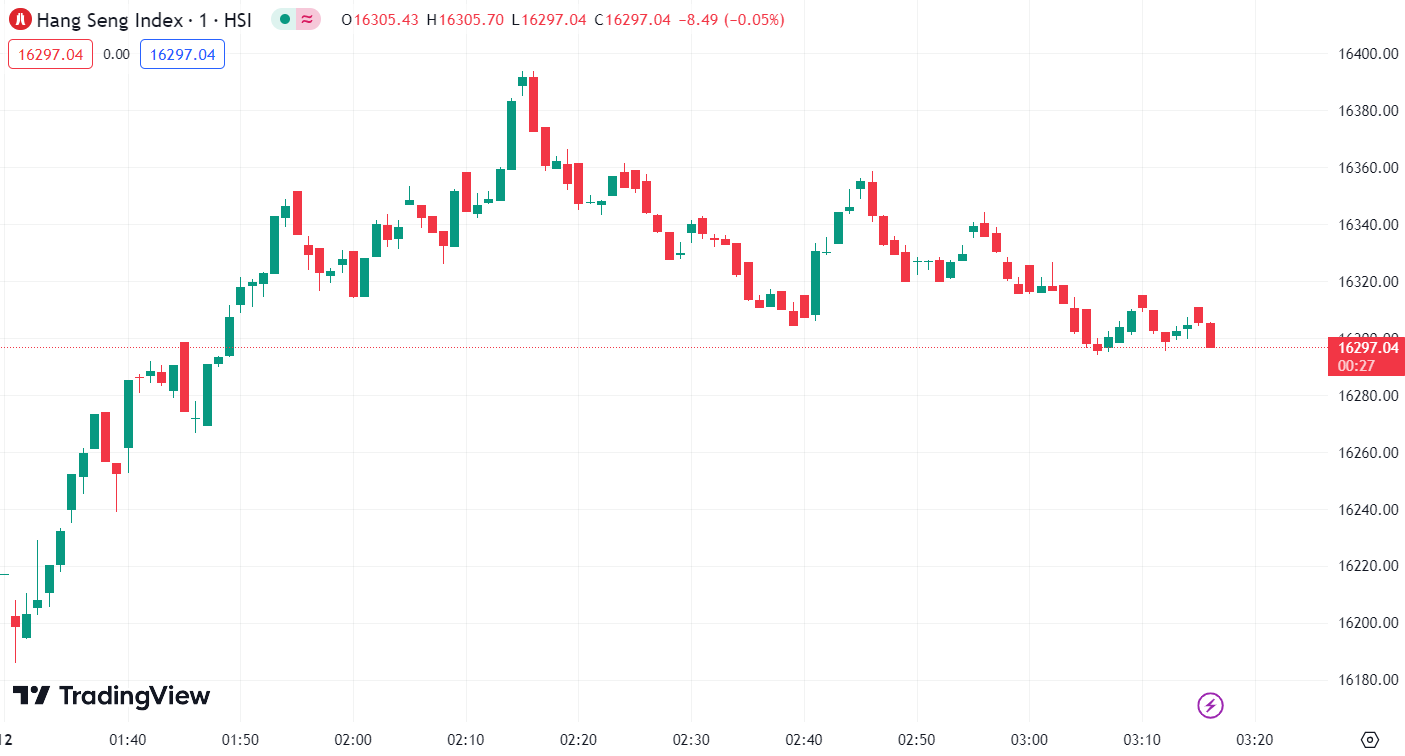 • 恒生指数涨 0.03%,收报 16307.10 点