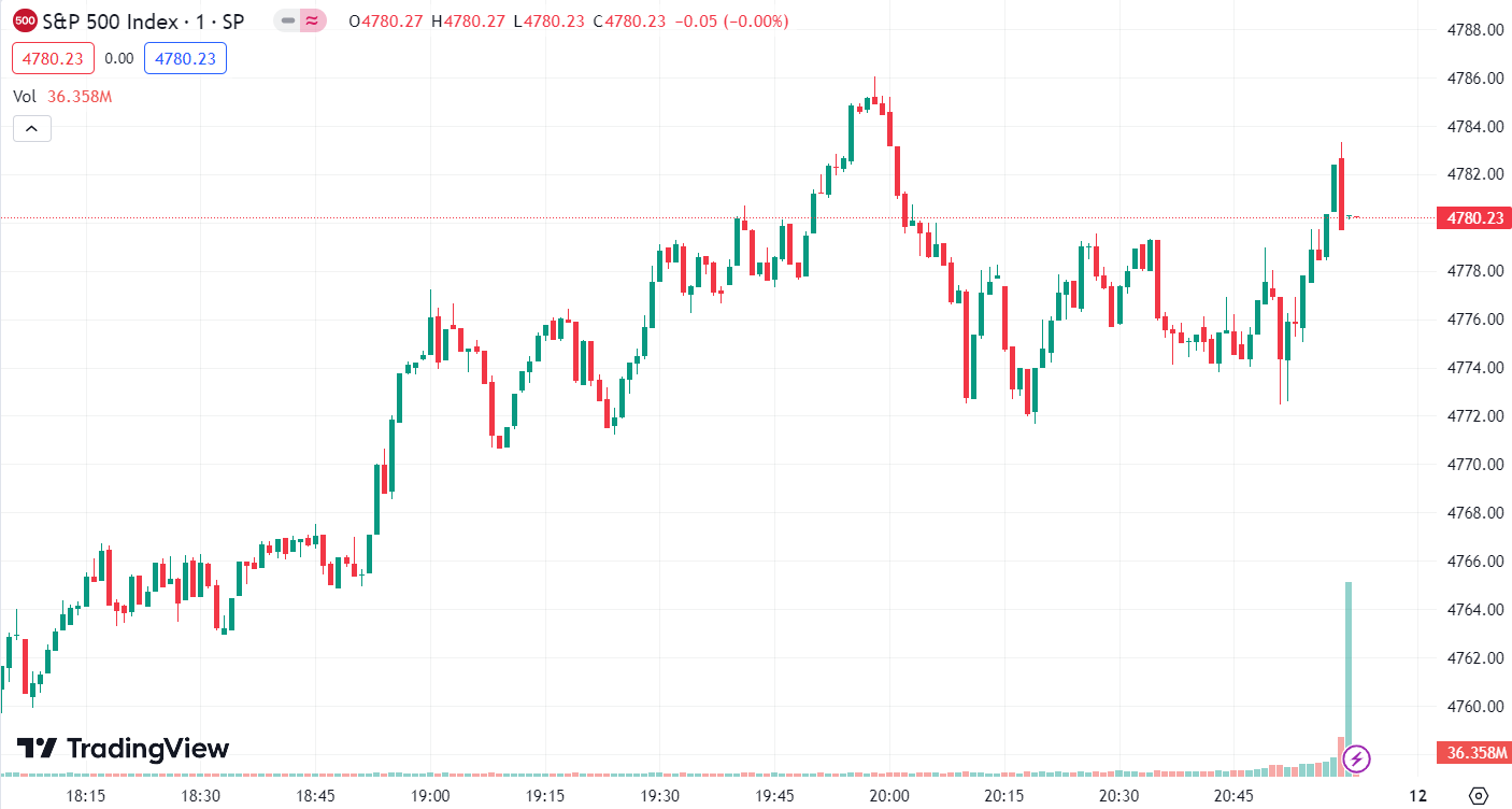 • 标普 500 指数跌 3.21 点,跌幅为 0.07% ,报 4,780.24 点