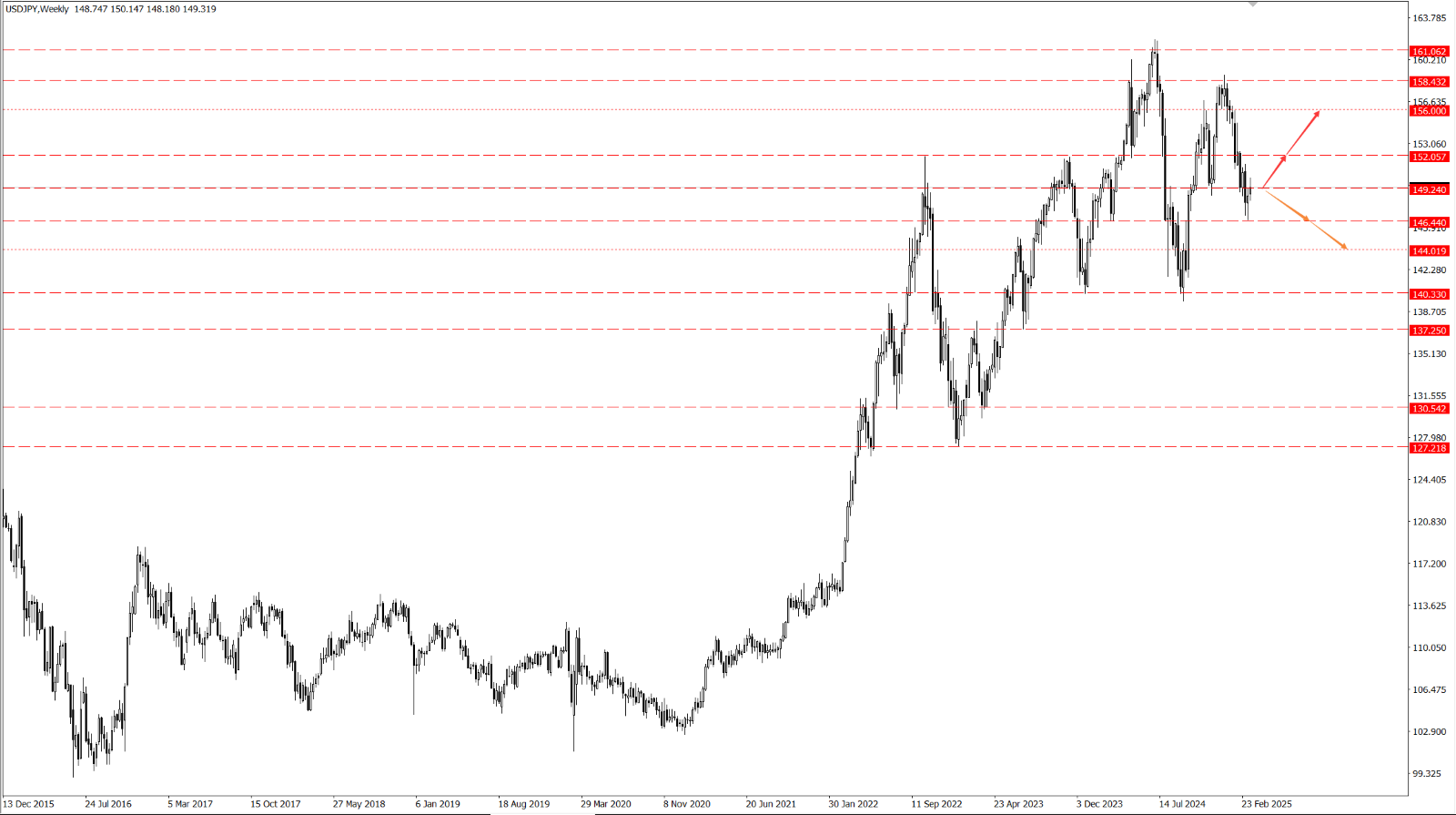 - 如果空方强势打压使美元兑日元回落至 149.24 一线下方,则依次关注关注 146.44 和 144.01 两个位置的支撑力度,尤其关注 146.44 一线,一旦美元兑日元跌破 146.44 一线则将打开深度回调的空间;