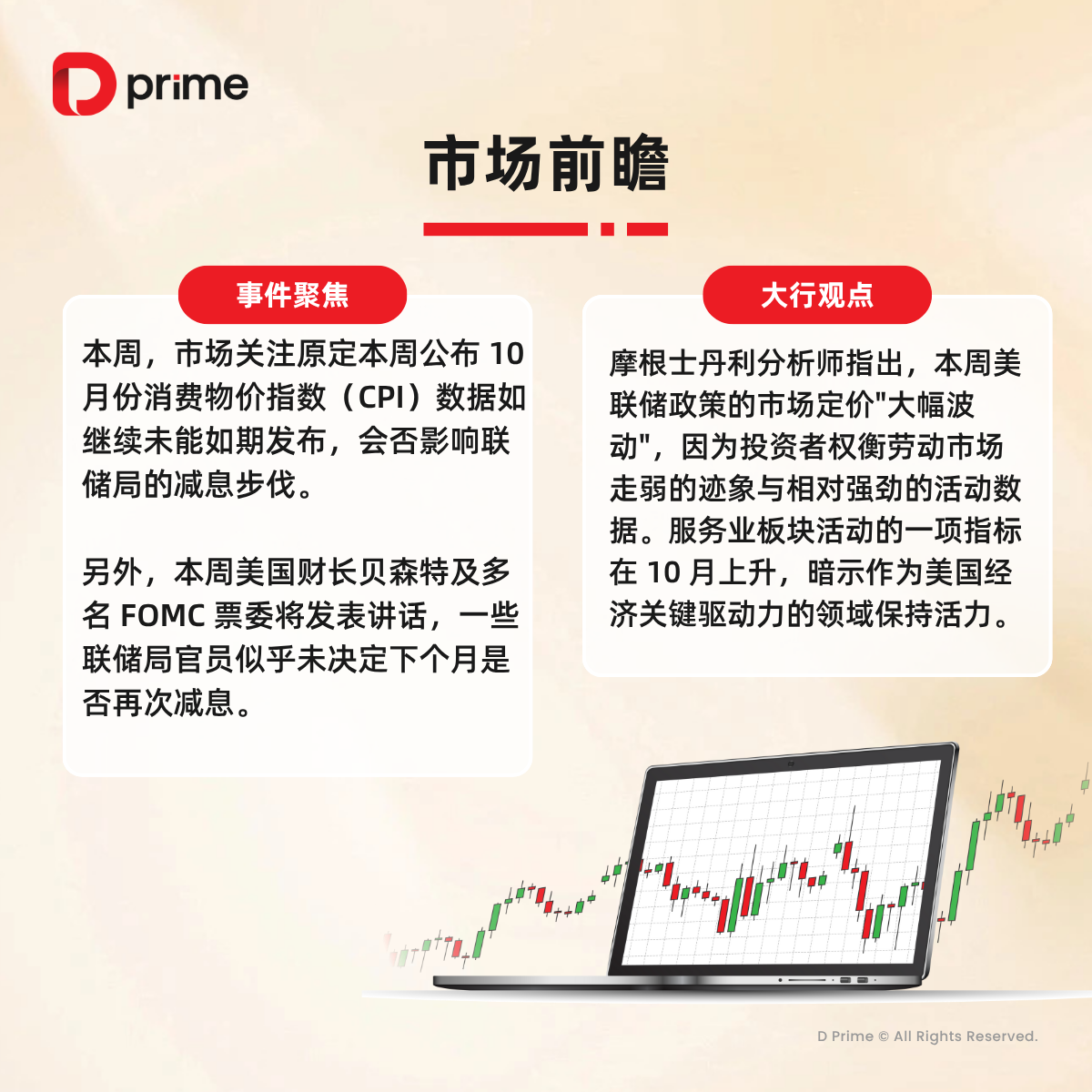 精选研报 | 上周,黄金重返 4000 美元上方,英国央行如期按兵不动,维持基准利率在 4%不变。 本周,周市场关注原定本周公布 10 月份消费物价指数(CPI)数据如继续未能如期发布,会否影响联储局的减息步伐。还有哪些大事值得关注?下方图片速览: