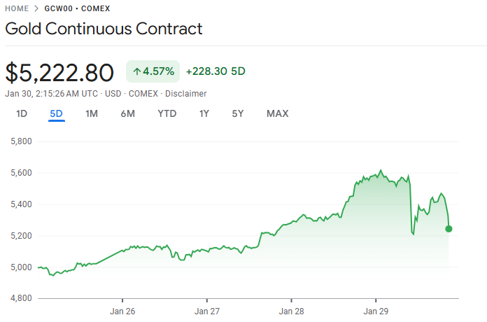 国际金价周四大幅下挫,从每盎司 5,500 美元上方的历史高位急剧回落,创下自去年 10 月以来最大单日跌幅。避险情绪高涨下,投资者为弥补股票等风险资产的损失而抛售黄金与白银等贵金属,市场出现集中获利了结。