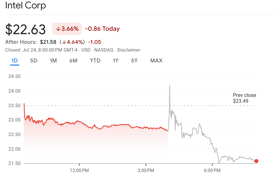 英特尔(INTC)发布 2025 财年第二季度财报,营收同比微增0.2%,达到129亿美元,超出市场预期的 119.5 亿美元;但每股亏损 0.1 美元,低于预期的微幅盈利 0.01美元。