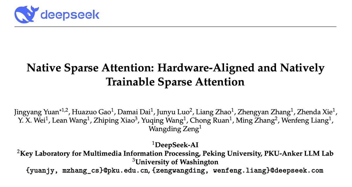 与此同时,梁文锋携 DeepSeek 研究团队发布了最新的研究成果——原生稀疏注意力(Native Sparse Attention, NSA)。这项技术有望大幅提升下一代大语言模型处理长文本的能力,同时还能兼顾效率,可谓是 LLM 领域又一里程碑式的进展!