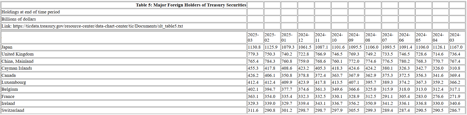 截至今年 2 月,中国大陆是仅次于日本的第二大美债持有国家地区。3 月持仓的下降,令中国大陆成为美债的第三大债主,英国为第二大。英国 3 月所持美债增加 290 亿美元至 7793 亿美元。这也是英国的美国国债持仓二十多年来首次高于中国。