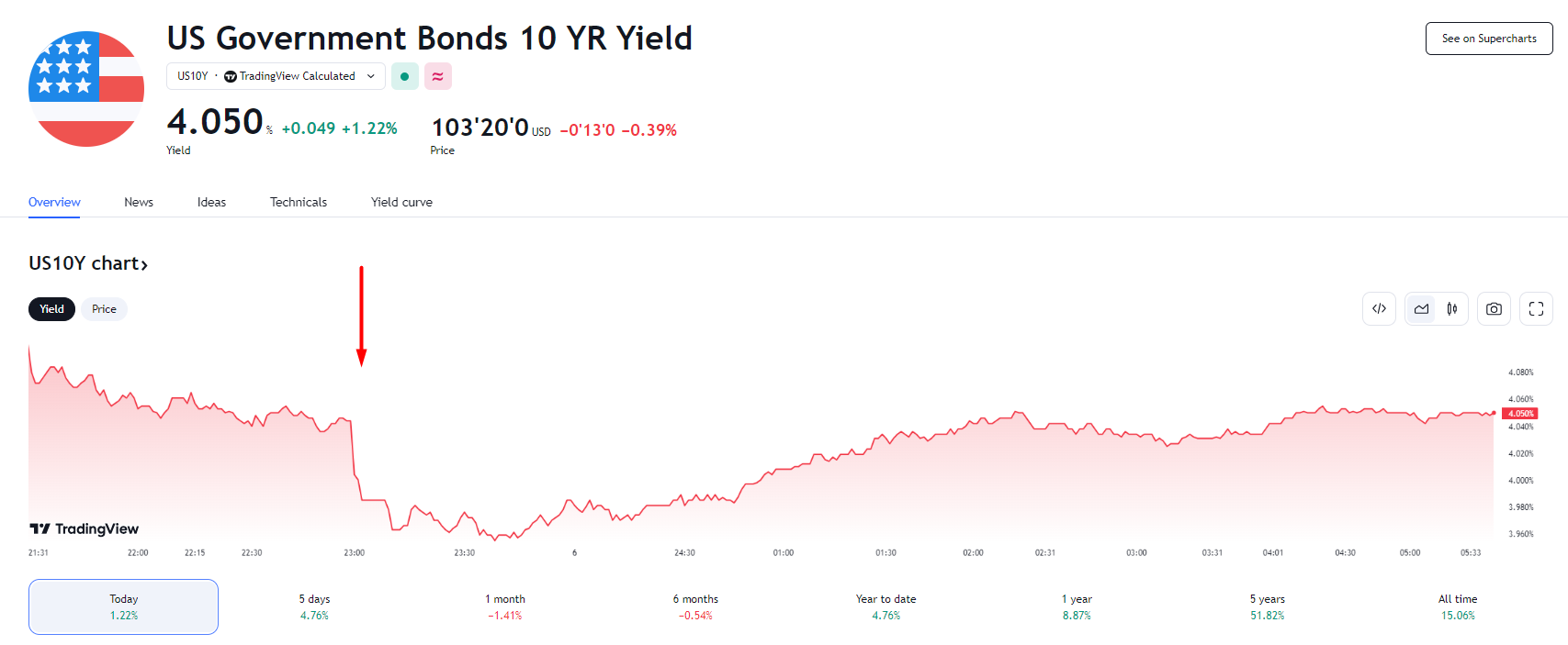 联邦利率互换重新将美联储 3 月降息 25 个基点的概率定价在 70%;美债价格跳涨,收益率加速回吐非农就业报告后的升幅,10 年期美债收益率短线跳水大约 6 个基点,刷新日低至 3.98% 下方,日内整体跌约 2 个基点;2 年期美债收益率短线跳水大约 6 个基点,刷新日低至 4.3307%,日内跌超 4 个基点。