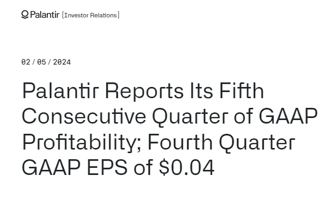 Palantir 公布财报显示,公司连续第五个季度实现 GAAP 盈利。其他第四季度业绩重点如下: