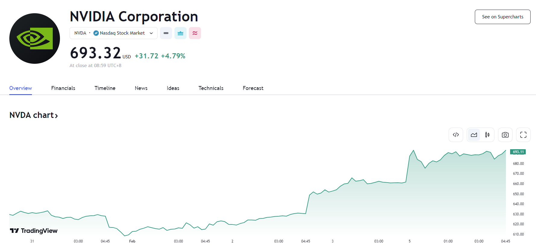 2 月 5 日, Palantir 公布财务业绩,第四季度业绩好于预期,同时给出了高出市场预期的 2024 年盈利指引,其股价因此大涨近 20%。同日, Yotta 买下大量 AI 芯片,英伟达因此获得 5 亿美元天价大单,提振英伟达收涨近 5%,连续三日创历史新高。 SAP 将特斯拉排除在汽车供应商清单之外,打压特斯拉美股盘中一度大跌约 7%。