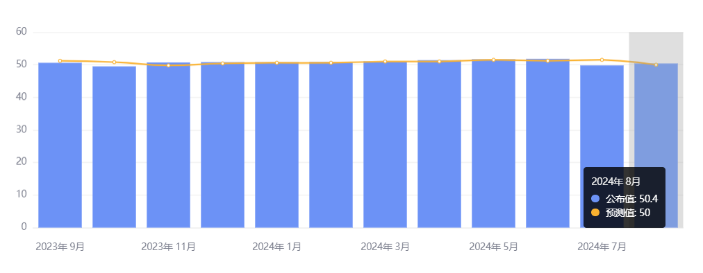 8 月 31 日,中国 8 月官方制造业 PMI 为 49.1,比上月下降 0.3 个百分点。国家统计局服务业调查中心高级统计师赵庆河表示,受近期高温多雨、部分行业生产淡季等因素影响,8 月份制造业 PMI 景气水平有所回落。然而,非制造业商务活动指数为 50.3,比上月上升 0.1 个百分点;综合 PMI 产出指数为 50.1,比上月略降 0.1 个百分点,经济景气水平总体保持稳定。