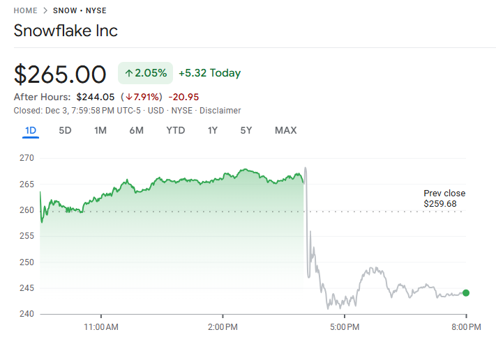 12 月 3 日至 4 日,Snowflake (SNOW) 在新任首席执行官上任后大举扩展人工智能业务,今年已完成四项收购,并投入约 2 亿美元与 Anthropic 合作,将 Claude 模型整合至自家数据平台。公司第三季度产品收入同比增长 29% 至 11.6 亿美元,盈利与订单表现均优于市场预期。