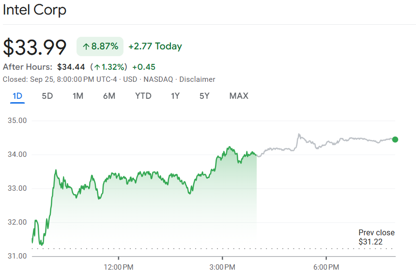 传英特尔接洽台积电商讨投资,股价连续两日大涨