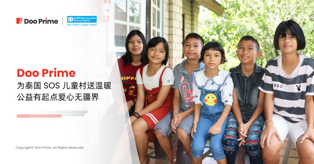 2021 年,Doo Group 旗下品牌 Doo Prime 与泰国 SOS 儿童村建立慈善合作关系,为失去父母的儿童提供家庭般温暖的成长环境。泰国 SOS 儿童村的最终目标是为孩子们建立一个充满爱的家园,让他们能成功融入社会。目前我们已捐赠约 13,000 USD 用于泰国 SOS 儿童村的慈善事业,值得一提的是,这笔善款的一部分来自 Doo Prime “慈善之星”计划。