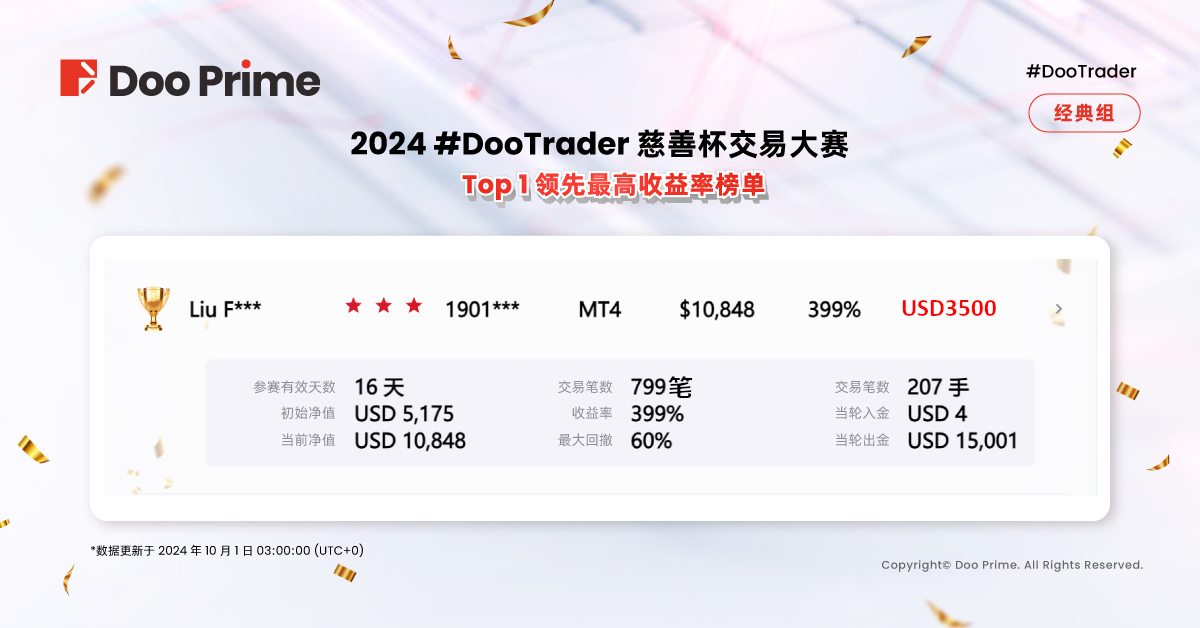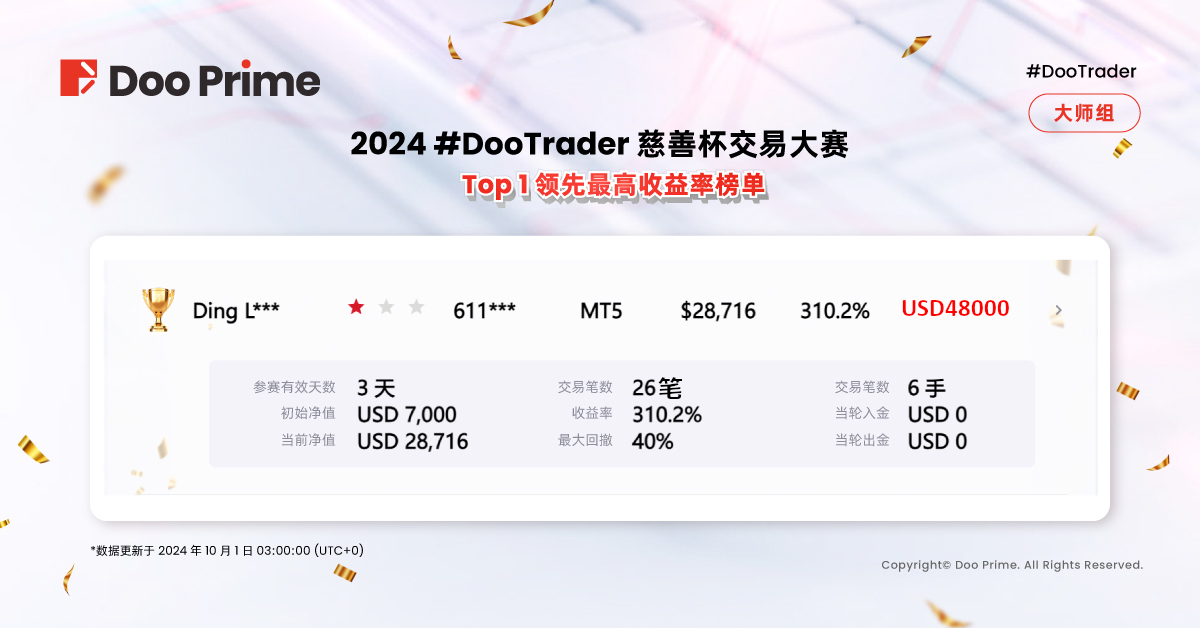 2024 #DooTrader 慈善杯 9 月交易大赛战况速览,选手仅凭两笔订单实现 310% 收益率!