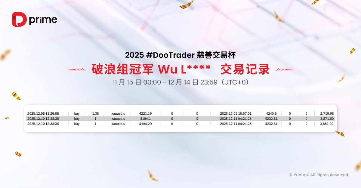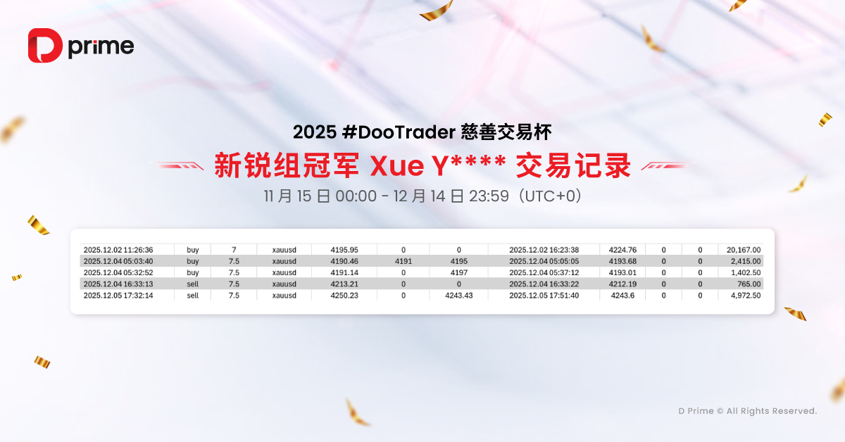 值得关注的是,2025 #DooTrader 慈善杯交易杯不仅是一场较量,更是一个传递爱心的公益活动。每当您在比赛中完成 1 手交易,D Prime 都将代表您捐出 0.1 美元,帮助改善贫困儿童的教育条件,让您的每一笔交易助力点亮更多孩子的未来。