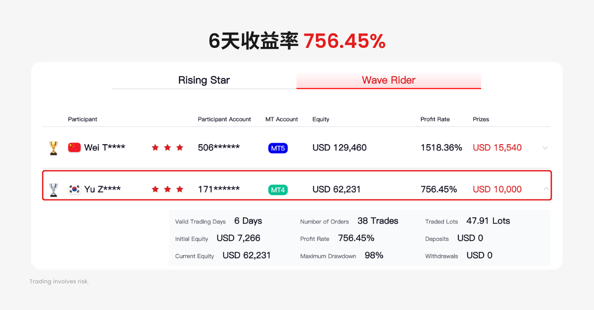 6 天 756.45% 的收益率,Yu Zaishek 向世人展示了什么是“韩国速度”,他的实力绝不亚于第一名 Wei Tengfei。