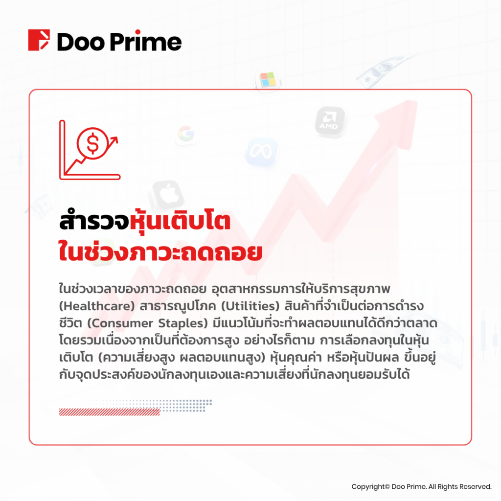 ศึกษาข้อมูลอย่างละเอียด กระจายความเสี่ยงของพอร์ต และมองในระยะยาว เป็นสิ่งสำคัญที่ช่วยสร้างผลตอบแทนสูงสุดจากการลงทุนในหุ้นเติบโตในช่วงภาวะเศรษฐกิจถดถอย