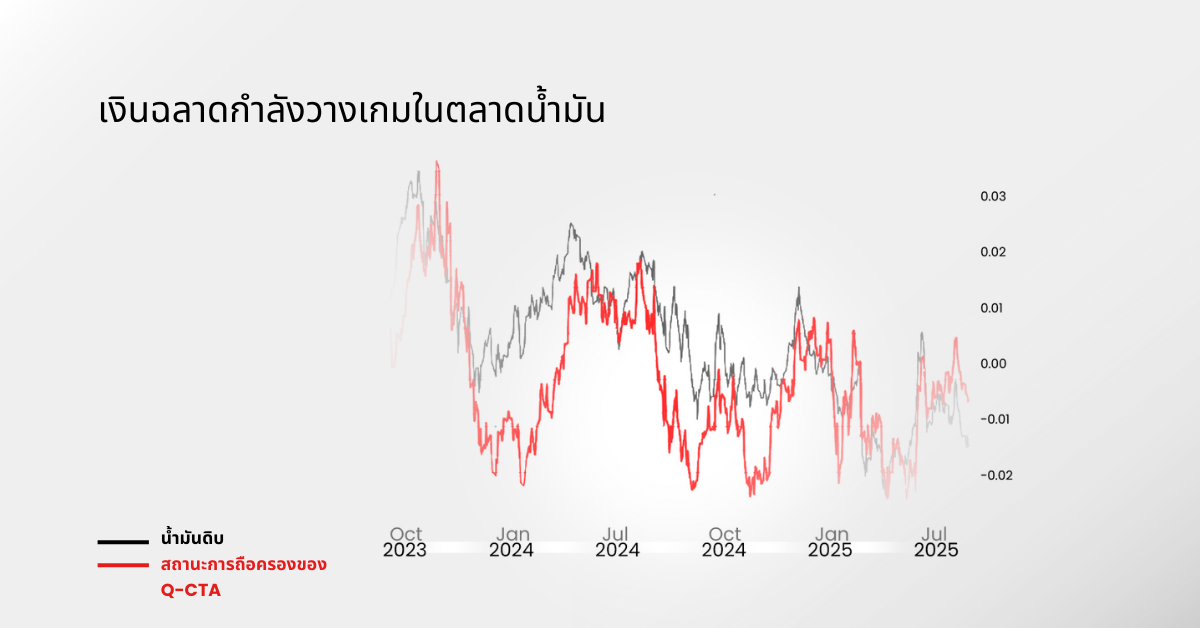 ณ วันที่ 15 สิงหาคม ราคาน้ำมันดิบลดลงควบคู่กับการลดโพสิชันของ CTA (Commodity Trading Advisor) ซึ่งใช้เป็นตัวแทนของแนวโน้มการเคลื่อนไหวของผู้เล่นรายใหญ่ กองทุนเหล่านี้ที่มักจะเกาะเทรนด์แรงๆ ตอนนี้เริ่มลดความเสี่ยงของตัวเองลง พูดง่ายๆ คือ เงินฉลาดอาจกำลังอยู่ฝั่งขาลงก็เป็นได้