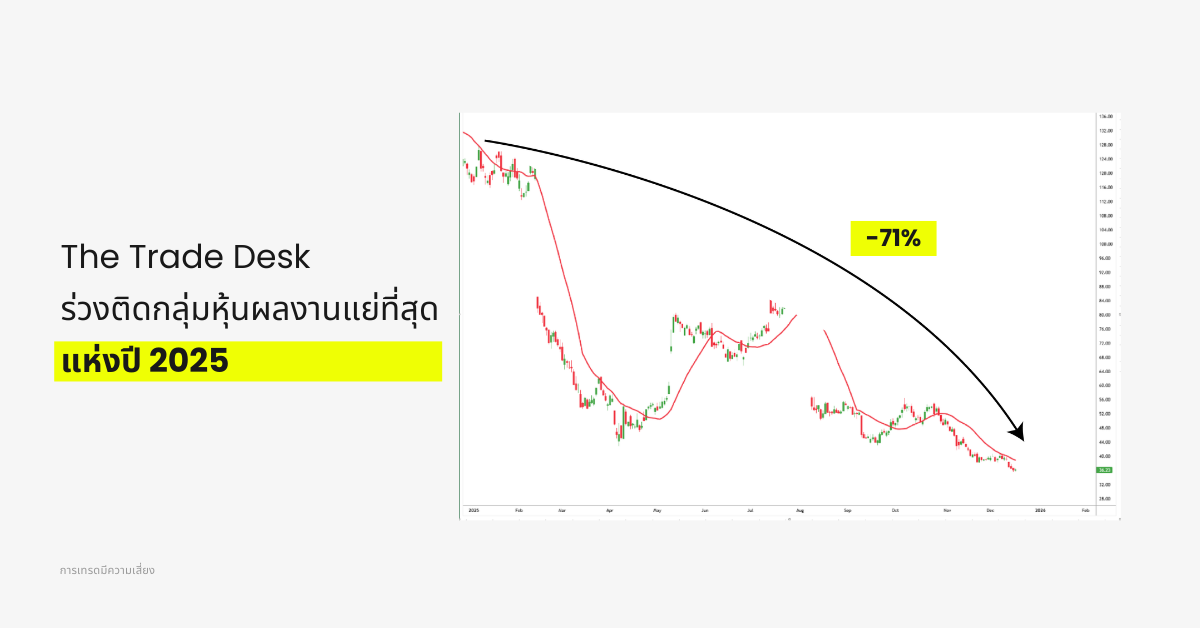 The Trade Desk เป็นหนึ่งในหุ้นเทคโนโลยีขนาดใหญ่ที่ร่วงลงอย่างน่าสังเกต ความกังวลเกี่ยวกับความต้องการโฆษณา การแข่งขันที่เพิ่มขึ้น และโมเมนตัมการเติบโตที่ช้าลงถ่วงความเชื่อมั่น ผลงานของหุ้นสะท้อนให้เห็นว่าตลาด ไม่ให้อภัย ต่อสัญญาณของการชะลอตัวในหุ้นที่มีมูลค่าสูง