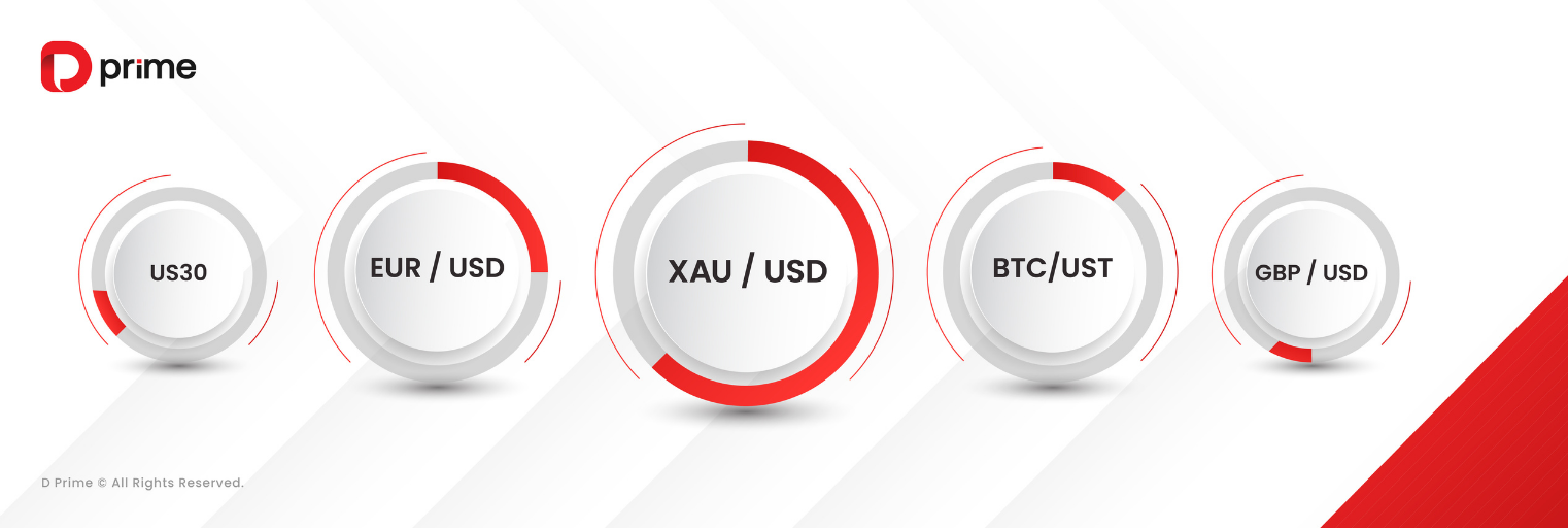 • Sản Phẩm Được Giao Dịch Nhiều Nhất: XAU/USD, EUR/USD, BTC/UST, US30 (Dow Jones), GBP/USD