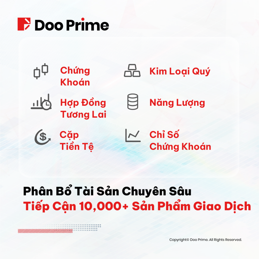 Bằng cách cung cấp quyền truy cập vào một loạt các sản phẩm CFD trên thị trường, Doo Prime tạo điều kiện cho các nhà đầu tư đưa ra những lựa chọn sáng suốt, phù hợp với mục tiêu tài chính và mức độ chấp nhận rủi ro của mình.