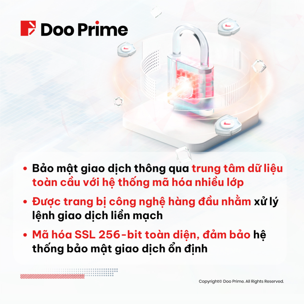 Ngoài ra, Doo Prime còn sử dụng công nghệ mã hóa SSL cho hệ thống giao tiếp và trao đổi nội bộ nhằm đảm bảo mức độ bảo mật cao nhất. Như vậy, dữ liệu khách hàng và thông tin giao dịch được truyền phát và bảo vệ trong vòng an toàn, từ đó góp phần xây dựng sự ổn định và bảo mật của toàn bộ hệ thống giao dịch.