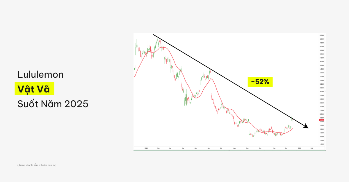 Lululemon chịu áp lực từ sự chững lại của nhu cầu tiêu dùng và sự cạnh tranh ngày càng gay gắt trong phân khúc thời trang cao cấp. Biên lợi nhuận được soi xét kỹ hơn khi mức chi tiêu dùng tùy ý suy yếu. Chính điều này khiến cổ phiếu LULU hoạt động kém hiệu quả hơn so với các chuẩn mực chung thường thấy trong nhóm ngành tiêu dùng.
