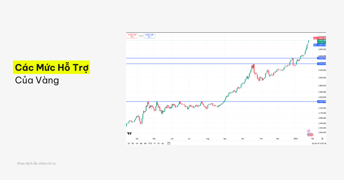 Vùng hỗ trợ lúc bấy giờ nằm trong khoảng 4.300–4.500 USD, nơi giá vàng nhiều khả năng sẽ ổn định. Nếu vùng này không giữ được, mức hỗ trợ mạnh tiếp theo sẽ nằm quanh mốc 3.400 USD.