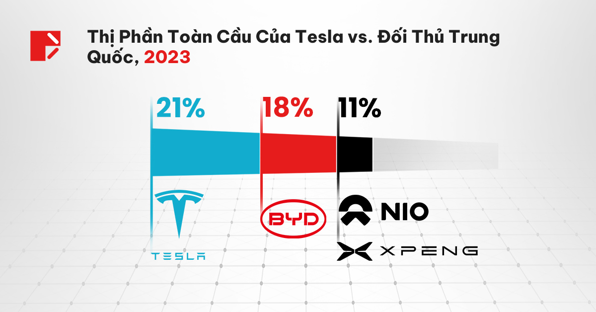 Việc Tesla miễn cưỡng điều chỉnh giá cho các sản phẩm của mình có thể sẽ khiến họ gặp bất lợi với các nhà sản xuất EV từ Trung Quốc. Các công ty như BYD và Li Auto không chỉ cung cấp các sản phẩm thay thế với giá tốt và phát triển công nghệ pin mà còn đang nhanh chóng mở rộng thị phần trên toàn cầu.